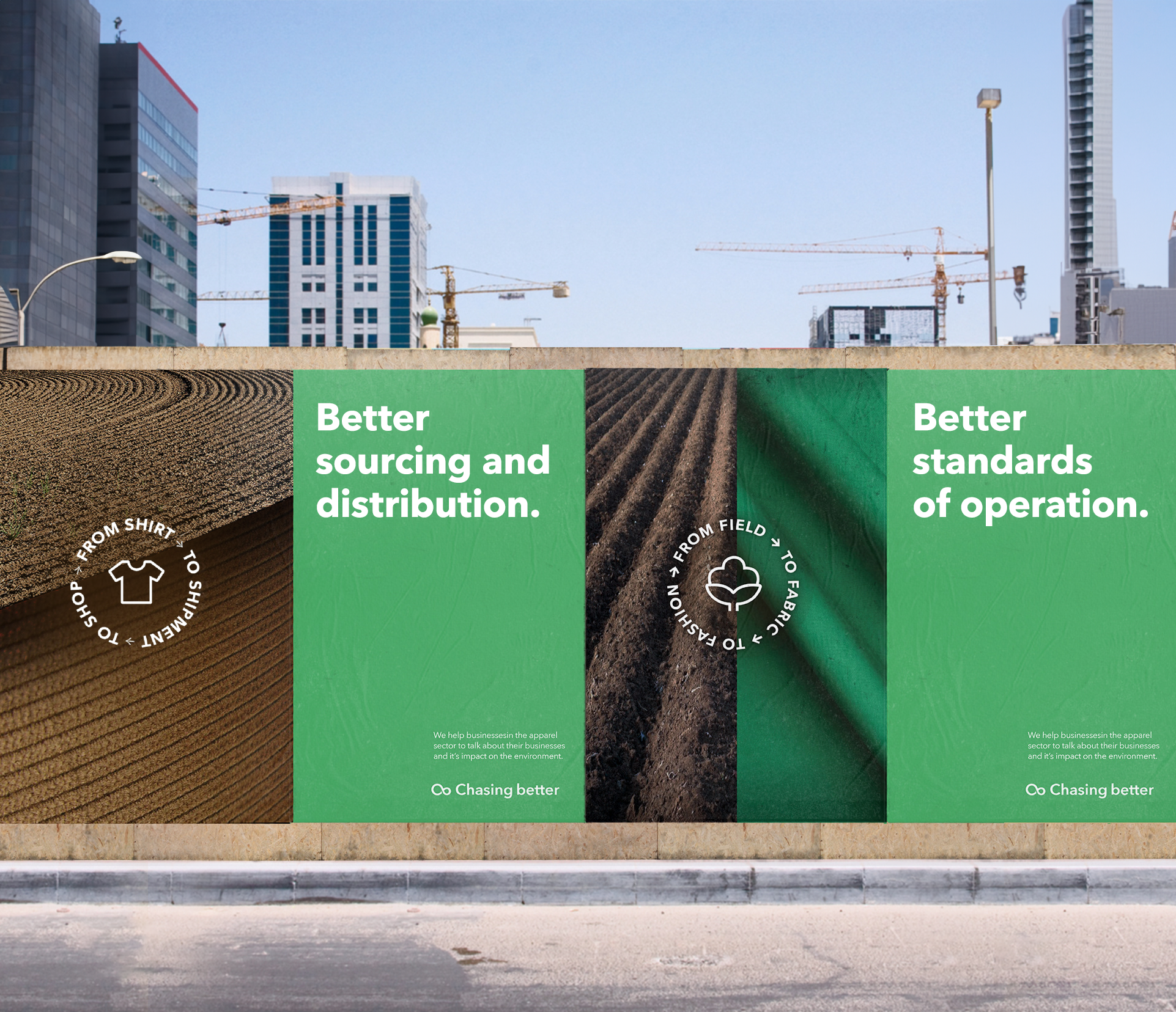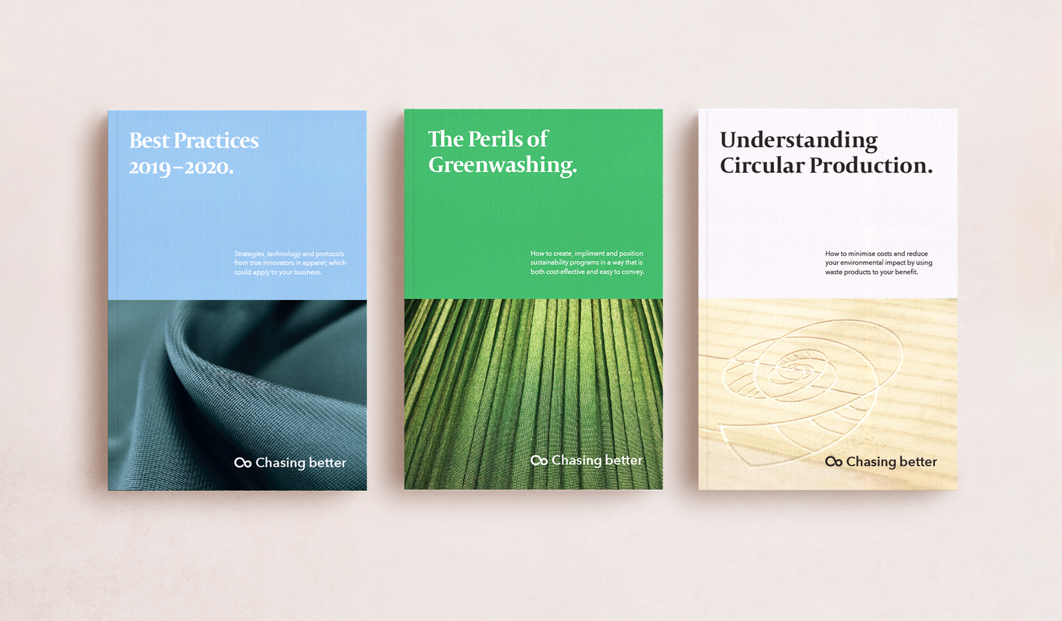 Goal: The development of a brand guide, presentation templates, promotional assets and a social media plan for Chasing Better; a sustainability consulting firm specializing in the Apparel sector.